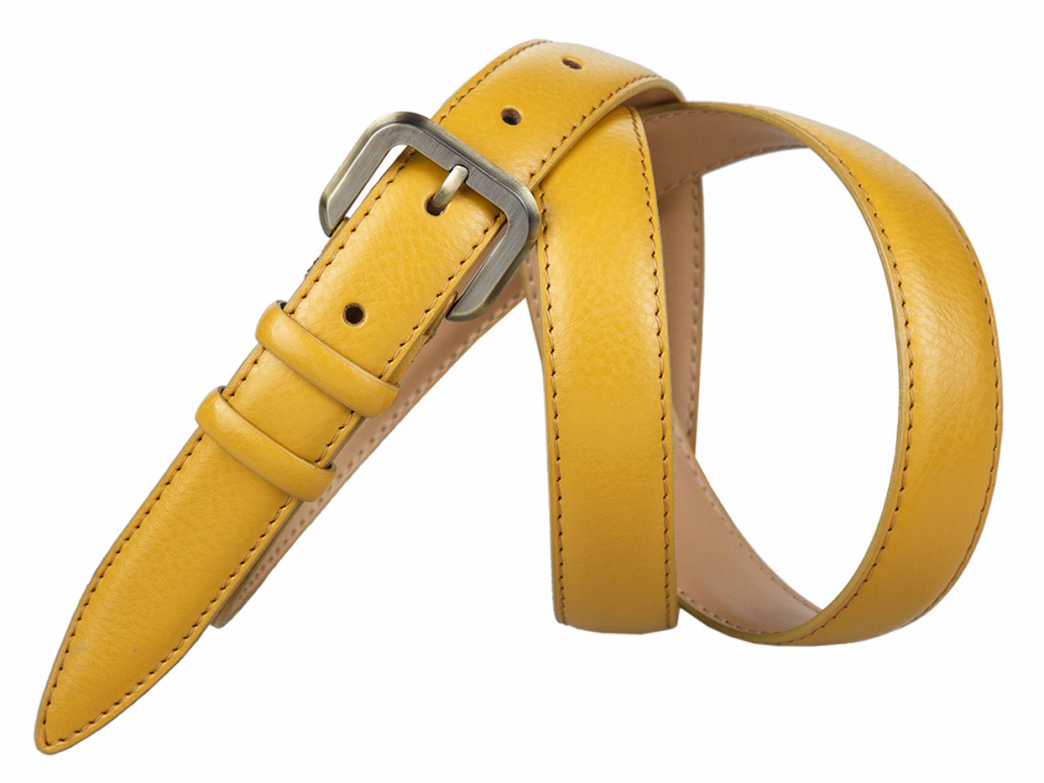 Кожаный желтый женский узкий ремень